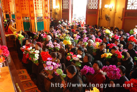 2012年2月26日下午1点30分,甘肃省兰州市五泉山浚源寺在大雄宝殿内隆重举行了2012年度首次皈依仪式。礼请甘肃省佛教协会副会长、兰州市佛教协会会长、五泉山浚源寺方丈理因法师登座为众传授三皈、五戒。
