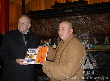 最后,永信法师热忱地邀请Karl Schlecht先生有空多到少林寺交流,并向其赠送礼品。
