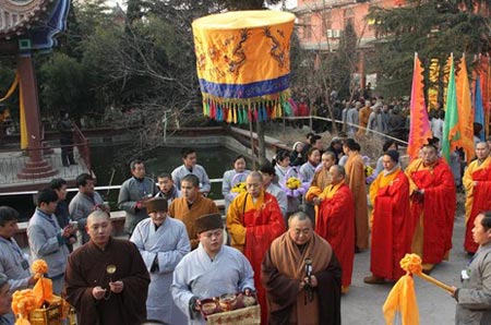 当天,省市各界有关领导发表讲话,对寂昌长老一生功德给予高度赞扬。延参法师在致辞中讲到,"寂昌老和尚年少出家,备尝艰辛,淡泊名利,慈悲渡人,无私无我,品德高尚,爱国爱教,菩萨情怀,把一生都奉献给了佛教文化和慈善事业,是我们学习和修行的楷模。"