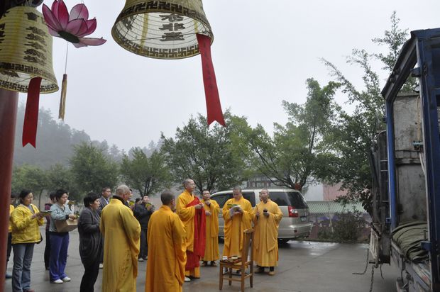 当天中午,在六祖寺方丈楼前举行放生仪式,晚上举行传灯祈福活动。(水菊报道)
