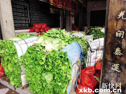 生菜被包装得十分喜庆(图片来源:大洋网 摄影:陈煜)