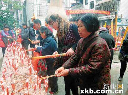 市民们纷纷来上香“借库”。(图片来源:新快网 摄影:郑斌)