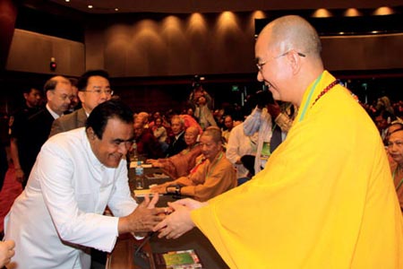 学诚法师与斯里兰卡总理贾亚拉特纳握手致敬