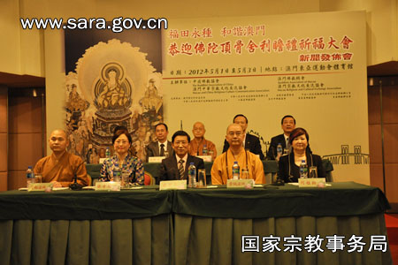 由澳门佛教总会,澳门中华宗教文化交流协会、澳门宗教文化交流协会提出申请,经中央政府批准,联同中国佛教协会共同举办的“福田永种和谐澳门恭迎佛陀顶骨舍利瞻礼祈福大会”将于2012年4 月30日至5 月4 日在澳门东亚运动会体育馆举行。3 月28日下午,主办机构于澳门世贸中心五楼莲花厅,召开首次新闻发布会,对外发布此项佛门盛事的有关讯息。