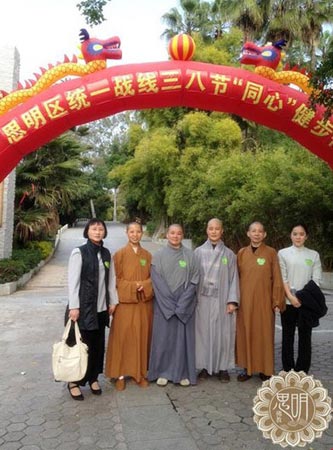 2012年3月2日,厦门市思明区委统战部组织统战系统纪念三八节“同心”健步行活动。区佛协积极响应统战部的号召,组织区属寺院女性住持参与健步行活动。区佛协会长普端法师、庆福寺心量法师、龙泉宫向因法师、净莲堂向成法师、延寿寺慧忍姑及甘露寺露慈姑等参加活动。