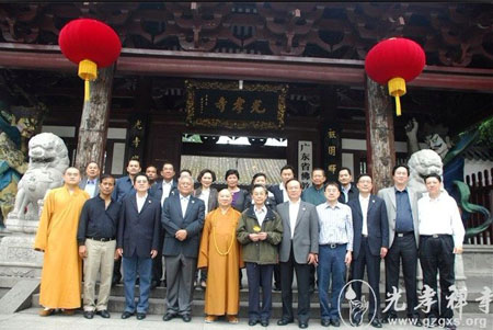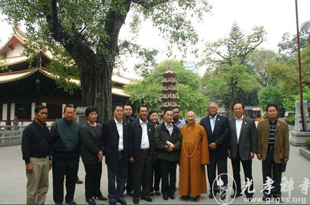 3月21日上午,泰国前总理、民主党顾问团主席川·立派,泰国前副总理、民主党党校校长素帖·特素班率领的泰国民主党高级干部考察团来广州光孝寺参观,光孝寺方丈明生大和尚、知客悟定法师予以了热情接待。明生大和尚引领考察团一一参观了光孝寺各个景点,并详细介绍了光孝寺内涵丰富的历史文化。考察团感谢光孝寺常住的热情接待,双方合影留念。