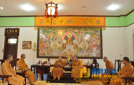2012年3月15日下午,中国佛教协会副会长纯一法师一行到广东四会六祖寺参访,受到六祖寺方丈大愿法师的热情接待。