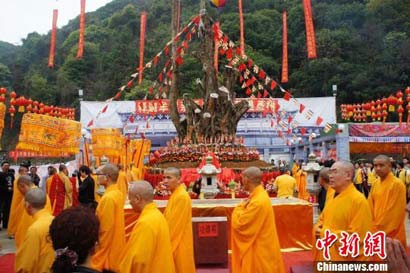 斯里兰卡2600年菩提树移植广东佛冈观音山(图片来源:中新网 摄影:李凌)