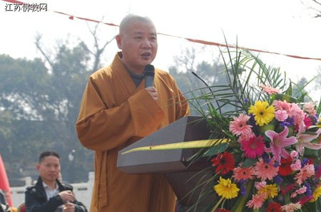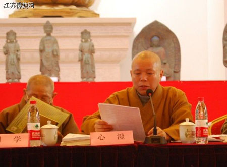 中国佛教协会副会长、江苏省佛教协会会长心澄大和尚致欢迎词(摄影;唐明)