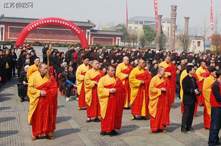 2012年3月26日,千年古刹——江苏镇江金山寺金山广场人流涌动,彩旗飞舞,上午10:30,江苏省佛教文化成果展示交流会暨佛教文化研讨会开幕式隆重举行开幕式,江苏省佛教协会副会长兼秘书长苏州寒山寺方丈秋爽大和尚主持开幕式。