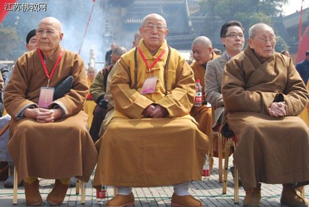 出席开幕式的诸山长老有:中国佛教协会咨议委员会名誉主席明学长老,中国佛教协会咨议委员会名誉主席松纯长老,中国佛教协会资源委员会名誉主席无相长老,中国佛教协会副会长、江苏省佛教协会会长、镇江金焦二山方丈心澄大和尚,中国佛教协会理事、浙江省佛教协会会长怡藏大和尚,中国佛教协会副会长、江西省佛教协会会长纯一大和尚,中国佛教协会副秘书长、上海市佛教协会副会长慧明大和尚,中国佛教协会副秘书长、安徽省佛教协会副会长慧庆大和尚,中国台湾法门寺方丈、苗栗生命佛学院院长、生命电视台台长海涛法师和江苏省佛教协会全体副会长、副秘书长以及江苏省人民政府、政协、人大和镇江市的相关领导。镇江市金山寺的护法居士、信众3000余人参加了开幕式。