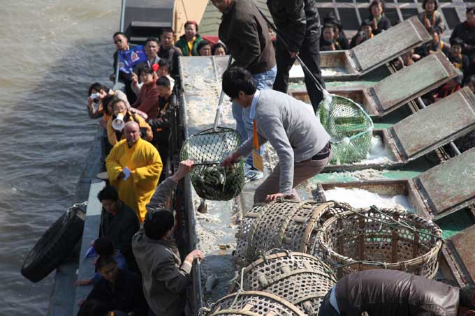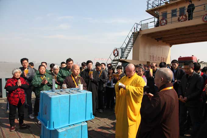 2012年4月4日清明节,弘化社于长江江阴段放生