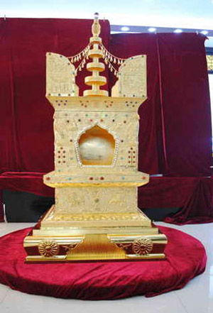 南京大报恩寺遗址地宫出土的释迦牟尼佛顶骨舍利4 月25日至5 月4 日将首次出境供奉。中国佛教协会会长传印长老、国家宗教事务局局长兼中华宗教文化交流协会会长王作安将率团乘包机从南京栖霞寺护送佛顶骨舍利先后到香港和澳门供奉。