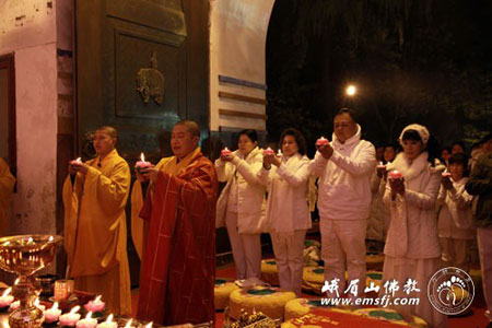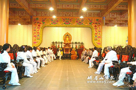 6日,朝圣团首先抵达万年寺,晚八时,在诸位法师带领下,朝圣团信众怀着诚敬之心共同参与万年寺供灯法会,并许下了美好的愿望和祝福。7日,万年寺法师带领朝圣团信众诵经祈福。晚八时,峨眉山佛教协会为朝圣团举办了“佛教文化艺术”表演,双方展开了愉快的交流。8日上午,在万年寺法师指引下,泰国丽善郡主带领朝圣团信众集体进行禅修。下午,朝圣团一行离开万年寺,并随即前往峨眉山大佛禅院继续进一步的参访。