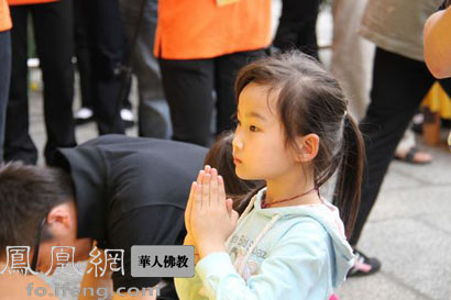 在本焕长老灵前跪拜的小朋友(图片来源:凤凰网华人佛教 摄影:无花)