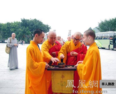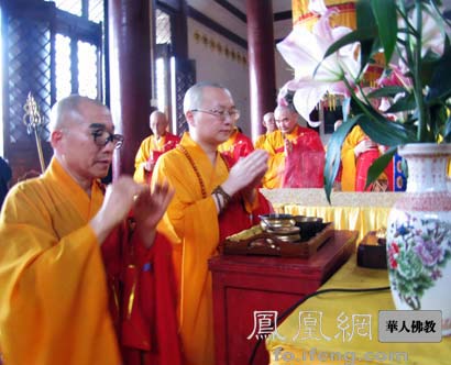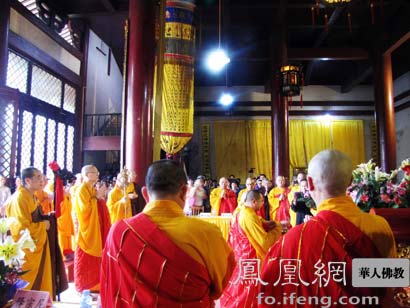 延和法师一行礼拜水陆法会内坛(图片来源:凤凰网华人佛教 摄影:水菊)