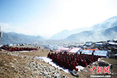 玉树灾后两周年祭结古寺积善回向大法会(图片来源:中新网)