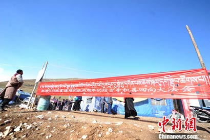 “纪念4•14地震遇难同胞两周年”结古寺回向法会现场(图片来源:中新网)
