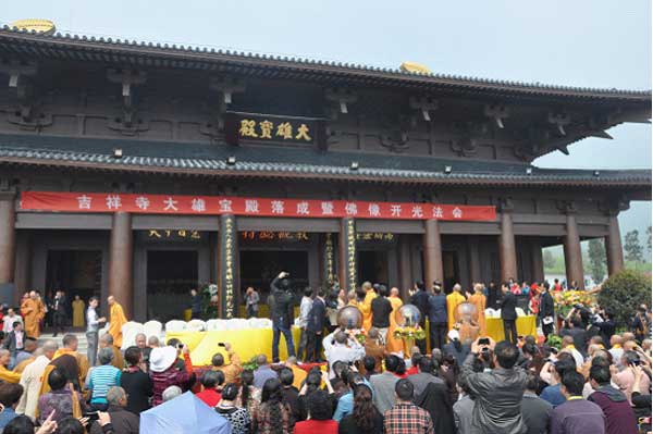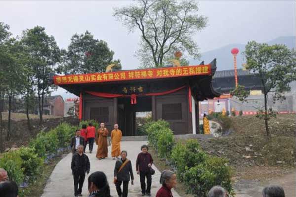 2012年4月11日,由无锡灵山实业有限责任公司、灵山祥符禅寺援建的四川绵竹吉祥寺一期工程,在党和政府及社会各界的关心和支持下,历时一年多基本完工。为感恩社会各界的无私援助,吉祥寺隆重举行了大佛开光法会暨大雄宝殿落成庆典。四川省宗教局巡视员翏万才,德阳市宗教局局长刘元英,绵竹市政府常务副市长冯军,中佛协咨议委员会副主席、灵山祥符禅寺方丈无相大和尚,四川省佛协副会长素全法师,江苏省佛协副秘书长陈健华,无锡灵山实业有限责任公司总经理助理华晓宁,吉祥寺住持宗诚法师等江苏省、四川省党政和佛协领导,以及来自全国各地的高僧大德、嘉宾居士、信教群众约一万多人参加了庆典仪式。