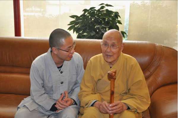祥符禅寺方丈无相大和尚与吉祥寺住持宗诚法师亲切交谈