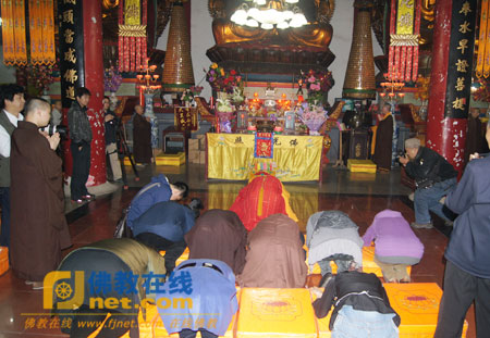 20日凌晨4时整,两序大众率十方善信来到传衣阁闭关房前,吟经唱诵,迎请见忍法师出关。吉时,随着闭关室门的徐徐开启,见忍法师神态庄严,法喜充满,缓缓走出传衣阁闭关房,结束了为期一个月的闭关修行。随即,在见忍法师的带领下,两序大众及十方善信来到大雄宝殿内拈香展礼,祈求国泰民安;礼毕,见忍法师现场为四众弟子作了:“生死无常,慎勿放逸;珍惜当下,勿忘四恩”的精彩开示。