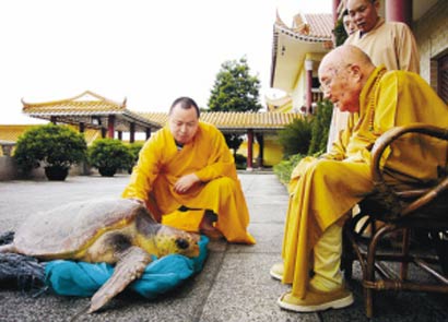 本焕老和尚和印顺大和尚共同主持大型放生活动(图片来源:深圳弘法寺 摄影:张定平)