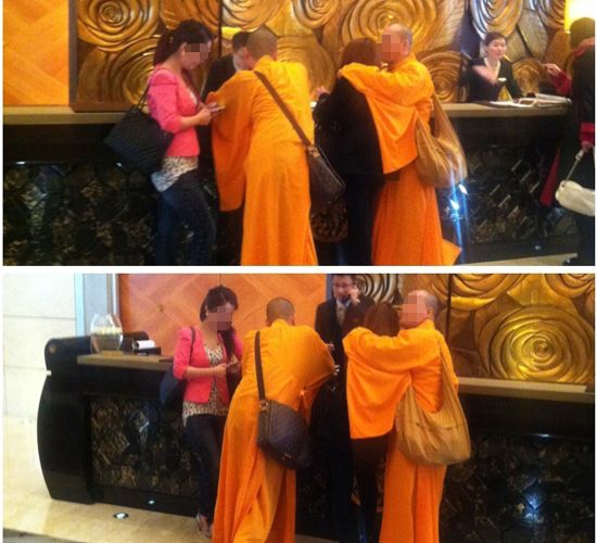 据小杜说,连日来在微博中一直热传两名“和尚”搂着女人逛街、开房的照片,寺内的僧众都注意到这两个被称为“和尚兄弟”的人。