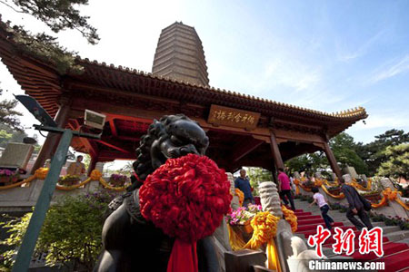 2012年5月12日,北京八大处公园中的灵光寺佛牙舍利塔对公众开放,大批香客冒着高温前来参拜祈福。
