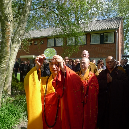 5月5日上午荷兰时间11点,诸山长老在恭请下共同主持禅堂落成庆典,并为文殊菩萨开光。整个法会庄严肃穆、严谨有序。法会圆满后,僧俗二众,法喜充满,合影留念。