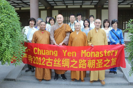 2012年5月19日上午9时,美国纽约庄严寺海乐法师一行参访法门寺,受到陕西省佛教协会副会长、法门寺监院、法门寺佛学院常务副院长贤空法师,法门寺佛学院常务副院长助理圣悦法师,法门寺佛学院办公室主任仁渡法师的热情接待。