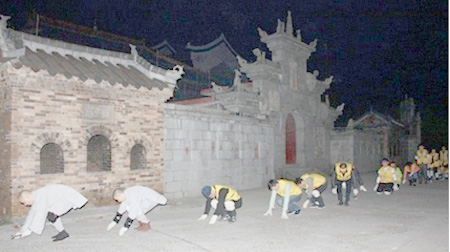 宗显法师对记者说:“身心健康,超越自我,创造价值,服务社会,是发起本次活动的初衷。原计划参加人数控制在十人以内,没想到部分营员得知消息后直接要求参与,超过预想的人有这么多。为满足大家的要求,寺院决定以后每年的5月16日都将举办一次跪拜朝山活动”。参加本次活动的广东邓怀宇先生感慨良多,他说:“我是第一次在庙里吃饭,第一次参加庙里的活动。庙里吃饭不浪费一粒粮食,不剩一片菜叶,碗里吃得干干净净,这种节约的好习惯,我要带回家里,带到自己的公司。念一句南无本师释迦牟尼佛,走几步就下跪拜一次,这种艰辛,是常人难以想象的,我真庆幸自己能拜完。以后在工作中、生活中如果遇到困难,我都会以此激励自己,只有坚持,坚定信念,才能超越自己,实现人生最大的价值!明年此时,我还要带着家人和朋友来这里朝山”。