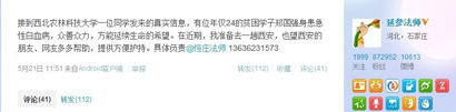 僧人微博发起救助白血病大学生 引发网友响应