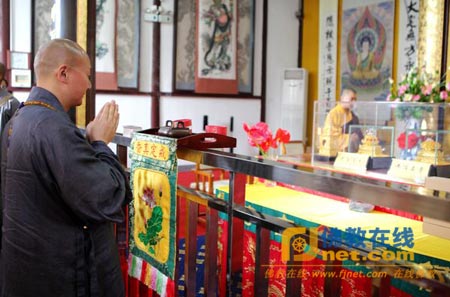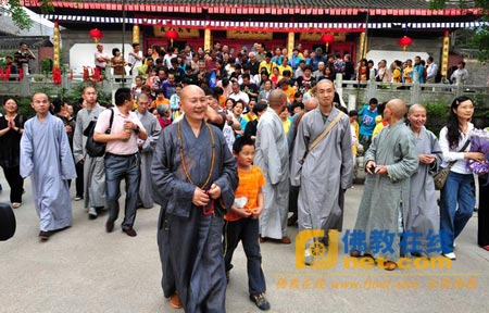 2012年5月22日下午13时,宁波慧日禅寺住持传喜法师率四众弟子到南京栖霞寺朝拜佛陀顶骨舍利,来自全国各地弟子在山门外与传喜法师会合,一同前往礼拜,以此殊胜功德,回施法界一切如父母有情,祈愿早日皈依三宝,发菩提心,同踏大宝莲台,同登觉岸,回向世界和平,灾难消除,风调雨顺,国泰民安。