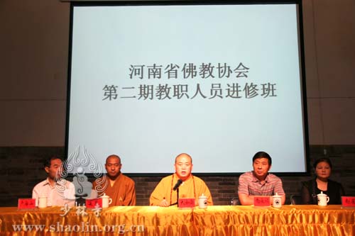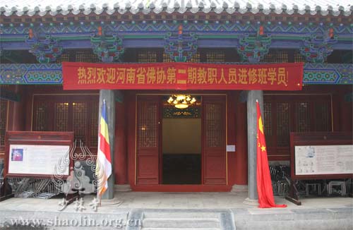 2012年5月29日上午,河南省佛协第二期教职人员进修班在禅宗祖庭少林寺开班。中国佛教协会副会长、河南省佛教协会会长释永信大和尚、河南省宗教局政策法规处赵展处长、中州古籍出版社编审卢海山先生、河南省佛教协会副会长释延慈法师、河南省佛教协会秘书长赵长欣和来自河南省各佛教寺院的70多位法师参加了开课典礼。
