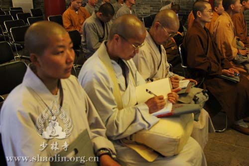 在开班仪式上,永信大和尚开示道:“作为中国佛教禅宗祖庭,少林寺非常欢迎各位法师的到来。希望各位法师认真学习国家的宗教政策、法律法规,交流寺院的管理经验,沟通学佛的心得,提高弘法利生的技能。同时,增进相互了解、相互认识,增强全省佛教界的凝聚力,为全省佛教发展、中原经济区建设及文化兴国战略贡献力量。”