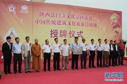 法门寺文化景区荣获“中国传统建筑文化旅游目的地”称号并接受授牌(图片来源:新华网)