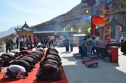 河北鸡鸣山数万香客烧香纳福 景点里外水泄不通