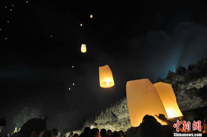 印尼民众放飞灯笼庆祝卫塞节
