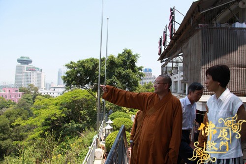 11点,黄菱部长一行走访了鸿山寺,并视察了鸿山寺翻建工地,鸿山寺住持法云法师向部长一行汇报了工程进展情况及未来规划等。
