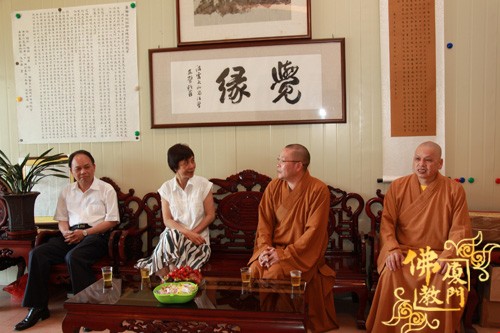 上午9点,厦门市佛教协会常务副会长定恒法师、副会长界象法师、法源法师、法云法师、普端法师、副会长兼秘书长净心法师、驻会副秘书长世澄法师等热情的接待了黄菱部长一行,并于佛协会议室座谈交流。净心法师受会长则悟大和尚委托向黄部长详细汇报了佛协工作及厦门佛教发展现状等情况,黄部长对厦门佛教界在促进社会和谐和精神文明建设等方面发挥的积极向上的作用表示肯定和赞誉,并希望再接再励为和谐社会多做贡献。