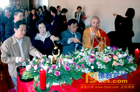 弥陀寺住持守志法师带领信众、侨胞进行浴佛