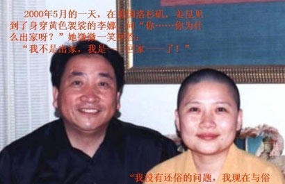 虽然久违李娜的行踪近况,但这丝毫不影响她演绎《青藏高原》、《走进西藏》、《好人一生平安》堪比天籁、至今无人可比,丝毫不影响她“既去而余音绕梁,三日不绝”的禅音,每每成为我人性进补的心灵鸡汤和灵魂毛掸。2012年5月12日《扬子晚报》一则有关她的消息自然吸引了我的眼球:李娜自1997年出家,一晃15年过去。有网络曝出李娜近照,称如今的她已从昔日歌星变成昌圣法师,远离世俗,潜心修佛。