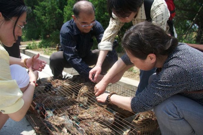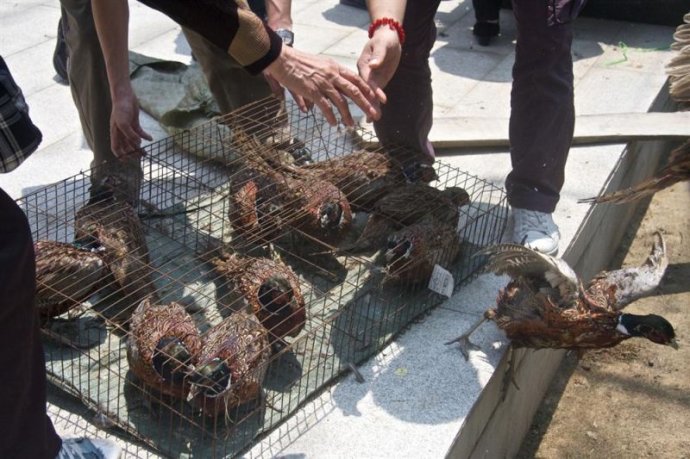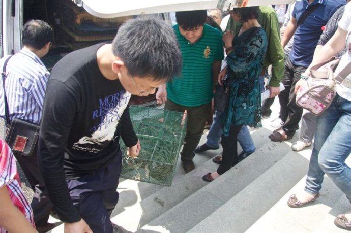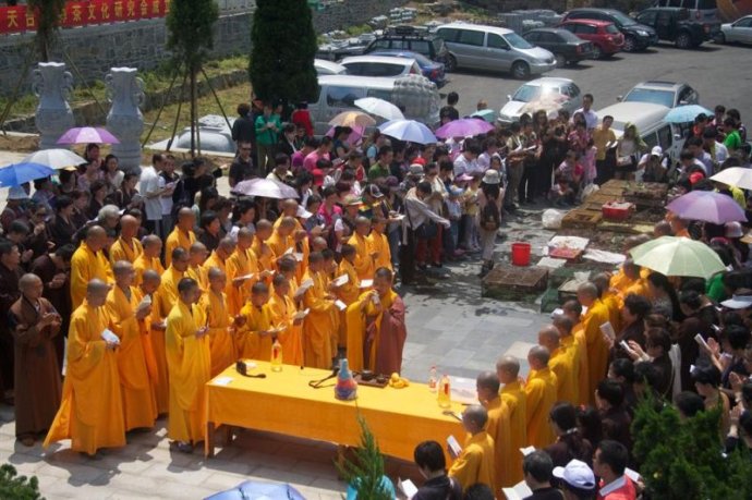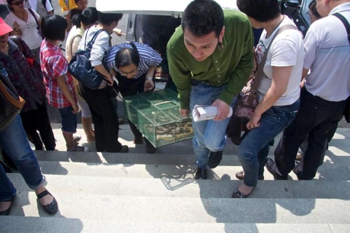 2012年5月6日,武汉归元护生群佛友们一大早出发,在红安天台寺参加了一场非常殊胜的放生活动。此次活动礼请武汉归元禅寺、红安天台寺的法师们共同为现场的斑鸠、水獭、狐狸、狗獾、野鸡、蛇、刺猬等野生动物皈依说法、洒净加持。武汉本地及周边地区,近三百位信众随喜参加了放生活动。