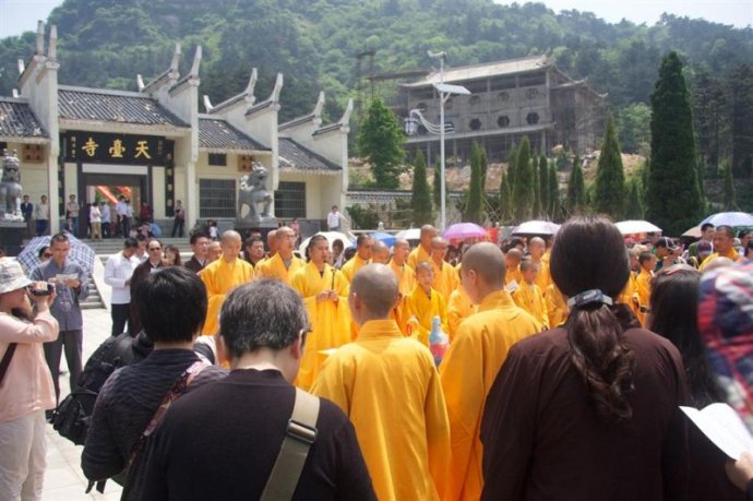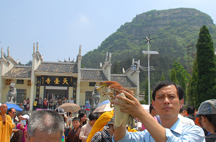 放生仪规结束后,为使所放之众永免网捕之祸,本着恭敬众生的原则,由法师带领,在弥陀名号的加持声中,由一批信众当场将鸟类放归山林,另一批信众将刺猬、蛇类等带到天台山深处放生。