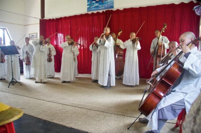 放生活动结束后,所有参加的信众在天台寺欣赏了由天台寺常住僧众表演的禅艺歌曲及舞蹈演出。演出结束后,所有在场信众向表演法师双手合十行闻讯礼,感恩常住法师的辛勤布施。