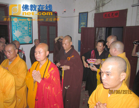 2012年5月5日,广东省徐闻县佛教界恭迎潜修历时6年的妙传生法师圆满出关,随着迎接出关法师的一声:“开”, 传生法师信步踏出闭关房门,飘逸如风,从容自在,在场的信众个个法喜充满,情不自禁共同唱起净化心境的赞僧歌。