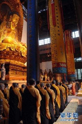 灵隐寺僧人在大雄宝殿为妞妞诵经祈福(图片来源:新华网)