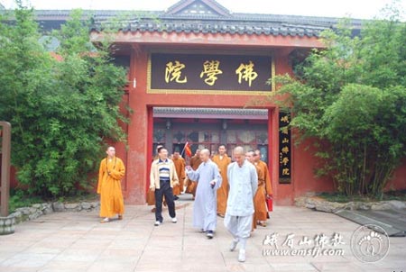 2012年6月6日上午,上海佛学院教务长澈忍法师带领佛学院40余名学僧一行到峨眉山参访。其间,上海佛学院师生一行参观了峨眉山报国寺、大佛禅院,并访问了峨眉山佛学院。峨眉山佛学院教务主任永照法师、大佛禅院知客法泽法师热情接待了上海佛学院师生一行,双方并座谈交流。