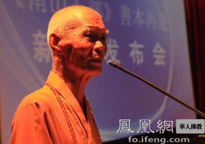 泉州开元寺方丈道元法师介绍《南山五部》善本再造工作进展(图片来源:凤凰网华人佛教 摄影:丹珍旺姆)