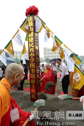 法鼓山援建四川安县民兴中学图书馆举行奠基仪式(图片来源:凤凰网华人佛教 摄影:张曜钟)